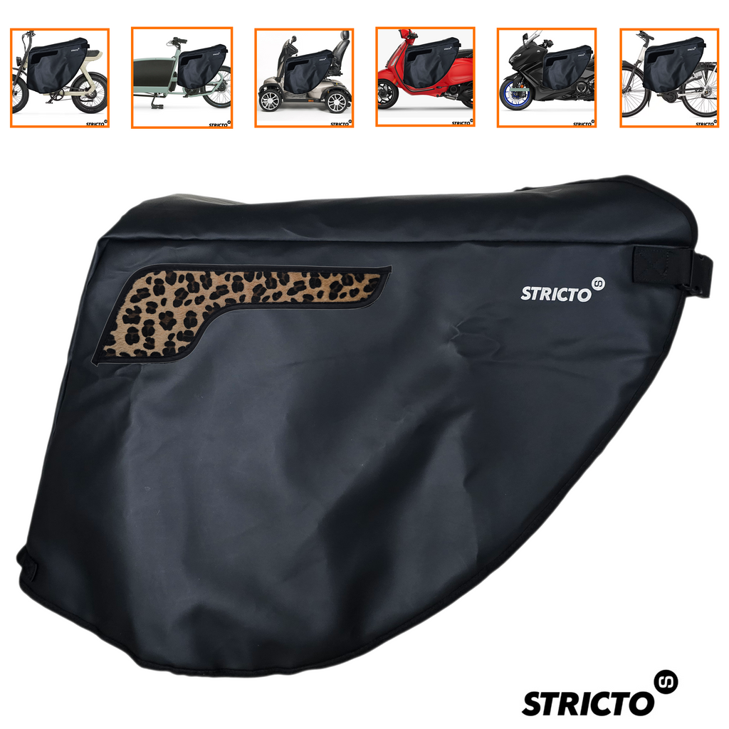 De Stricto Easy-On Premium Panter Beige is een stijlvolle en luxe uitvoering van het Easy-On Premium beenkleed, geleverd met een vaste set 3D panter patches met echt haar in een zachte beige tint. Deze uitvoering combineert maximale bescherming tegen kou en regen met een rustige, elegante uitstraling en is geschikt voor dagelijks gebruik op meerdere voertuigen.