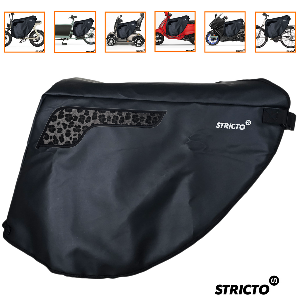 De Stricto Easy-On Premium Panter Grijs is een luxe en stijlvolle uitvoering van het Easy-On Premium beenkleed, geleverd met een vaste set 3D panter patches met echt haar in een grijze tint. Deze uitvoering combineert maximale bescherming tegen kou en regen met een rustige, moderne uitstraling en is geschikt voor dagelijks gebruik op meerdere voertuigen.