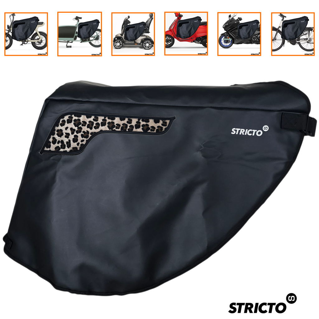 De Stricto Easy-On Premium Panter Champagne is een elegante en luxe uitvoering van het Easy-On Premium beenkleed, geleverd met een vaste set 3D panter patches met echt haar in een zachte champagnekleur. Deze uitvoering combineert maximale bescherming tegen kou en regen met een verfijnde, stijlvolle uitstraling en is geschikt voor dagelijks gebruik op meerdere voertuigen.